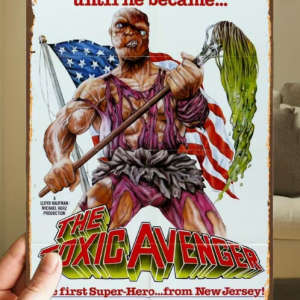 • Panneau Métallique vintage du Film “Toxic Avenger ” de Lloyd Kaufman (20 x 30 cm).