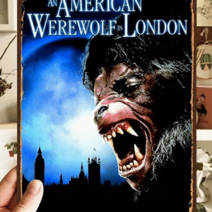 • Panneau Métallique vintage du Film “Le loup garou de Londres” de John Landis (20 x 30 cm).