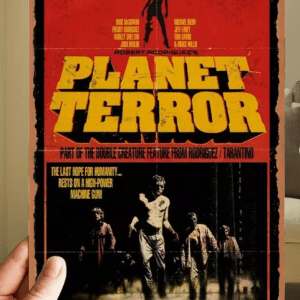 • Panneau Métallique vintage du Film “Planète Terreur ” de Robert Rodriguez (20 x 30 cm).