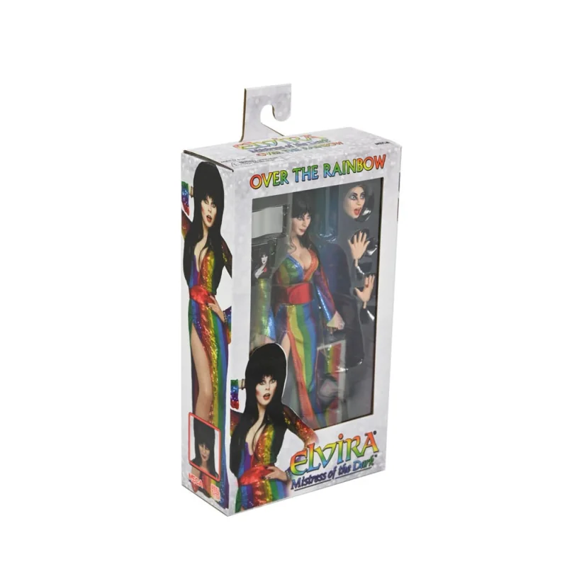 Célébrez le mois de la fierté avec Elvira, maîtresse des ténèbres ! La délicieusement diabolique Cassandra Peterson joue le rôle d’Elvira depuis plus de 40 ans avec grâce, humour et plus qu’un peu de camp. NECA est fier de présenter cette figurine Elvira « Over the Rainbow », célébrant l’horreur et l’icône queer dans une robe arc-en-ciel étincelante jamais vue auparavant pour votre collection.