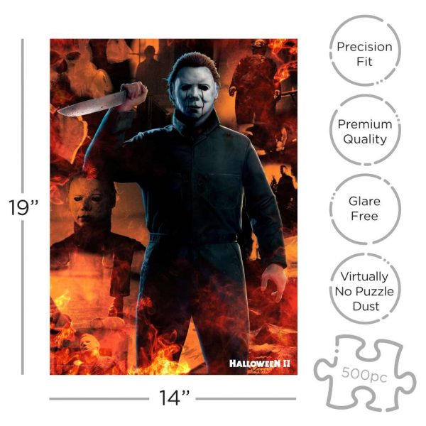 Échappez à la mort et laissez la terreur s’installer ! Ce puzzle de 500 pièces sur le thème d’Halloween II, mettant en scène Michael Myers à la poursuite de Laurie Strode, est la pièce de collection idéale à ajouter à votre collection.
