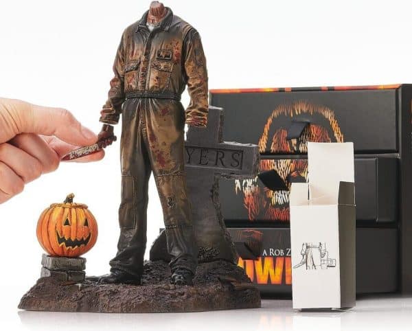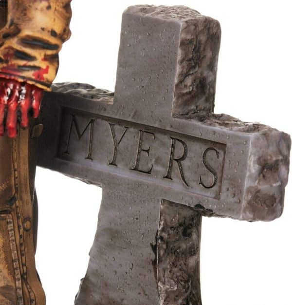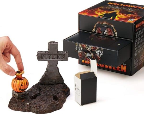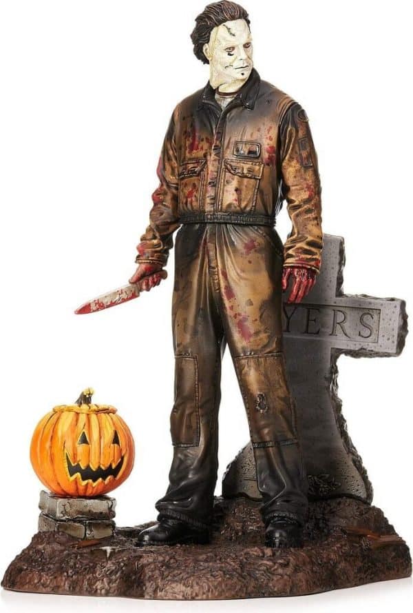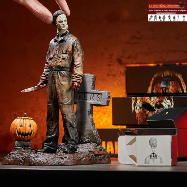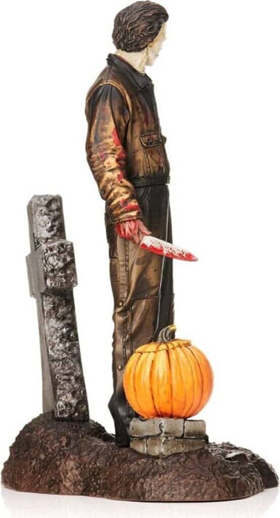 - Assemblez une terrifiante statue de Michael Myers de 18 cm, accompagnée de son couteau iconique, sa pierre tombale et sa citrouille.