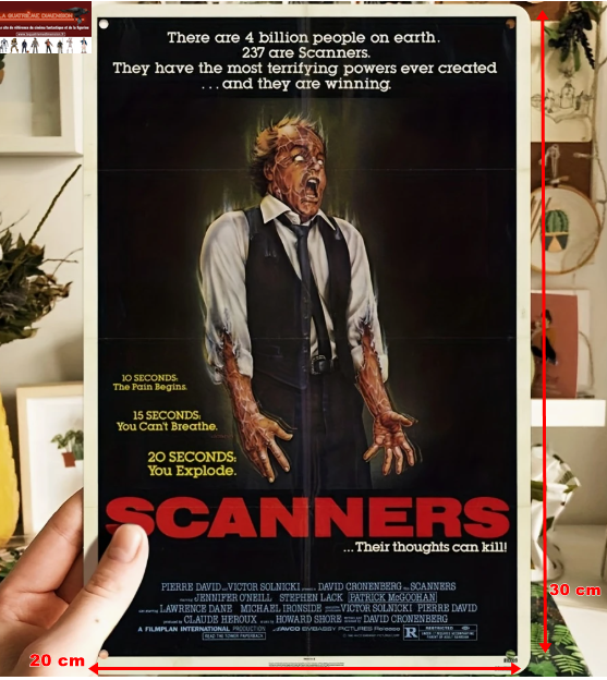 Panneau Métallique du Film “Scanners” réalisé par David Cronenberg 20 x 30 cm).