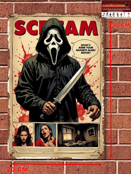 Panneau Métallique du Film “Scream” réalisé par Wes Craven, (20 x 30 cm)