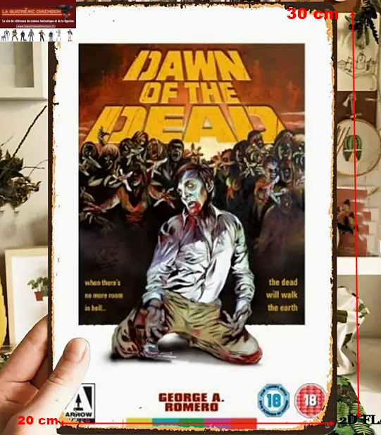 Panneau Métallique VINTAGE du film “Dawn of the Dead ” réalisé par Georges ROMERO (20 x 30 cm)