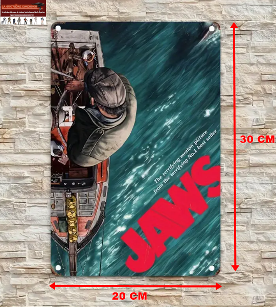 Panneau Métallique vintage du Film “JAWS” réalisé par Steven Spielberg (20 x 30 cm).