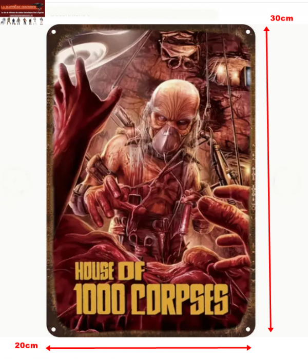 Panneau Métallique vintage du Film ” La Maison des 1000 Cadavres” réalisé par Rob Zombie (20 x 30 cm).