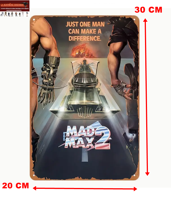 Panneau Métallique vintage du Film “Mad Max 2” réalisé par Georges Miller (20 x 30 cm).