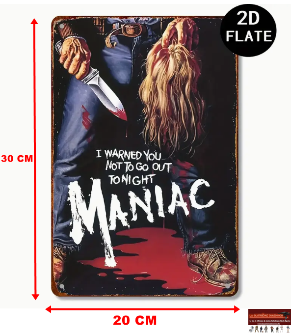 Panneau Métallique vintage du Film “Maniac” réalisé par William Lustig (20 x 30 cm).