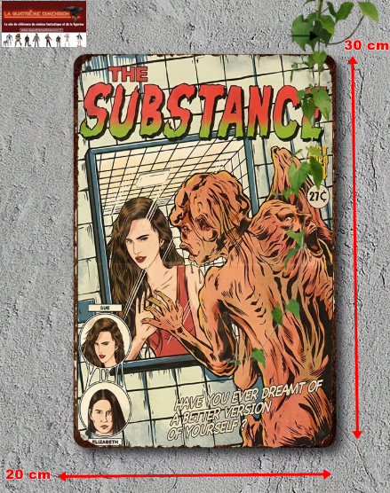 Panneau Métallique vintage fan art du Film “The Substance” réalisé par Coralie Fargeat 20 x 30 cm).