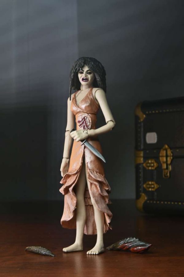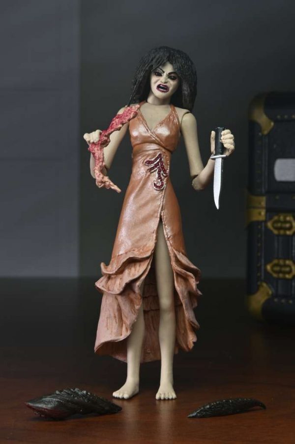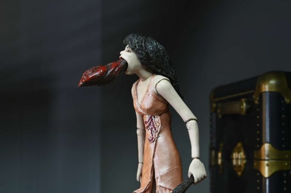 La figurine articulée Leech Woman mesure environ 10,8 cm de haut et comprend des têtes et des mains interchangeables, un couteau, des sangsues et de la matière cérébrale.